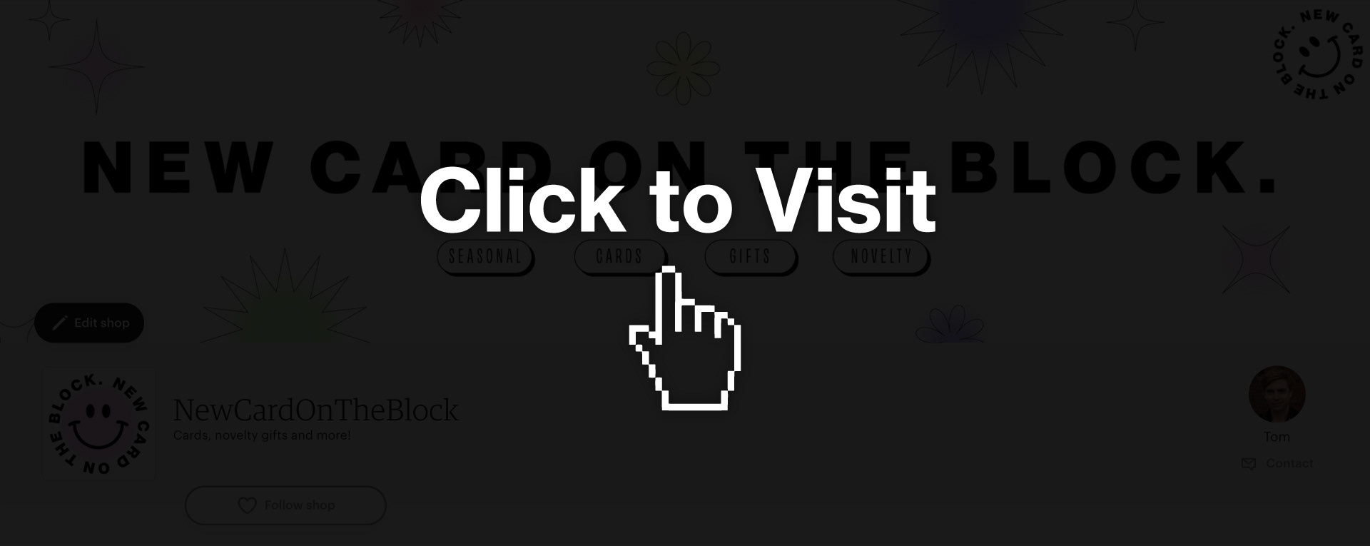New Card On The Block is an Etsy store dedicated to selling seasonal gifts, cards, and novelty items. I came up with a modern and funky brand identity to match the products sold on the store.